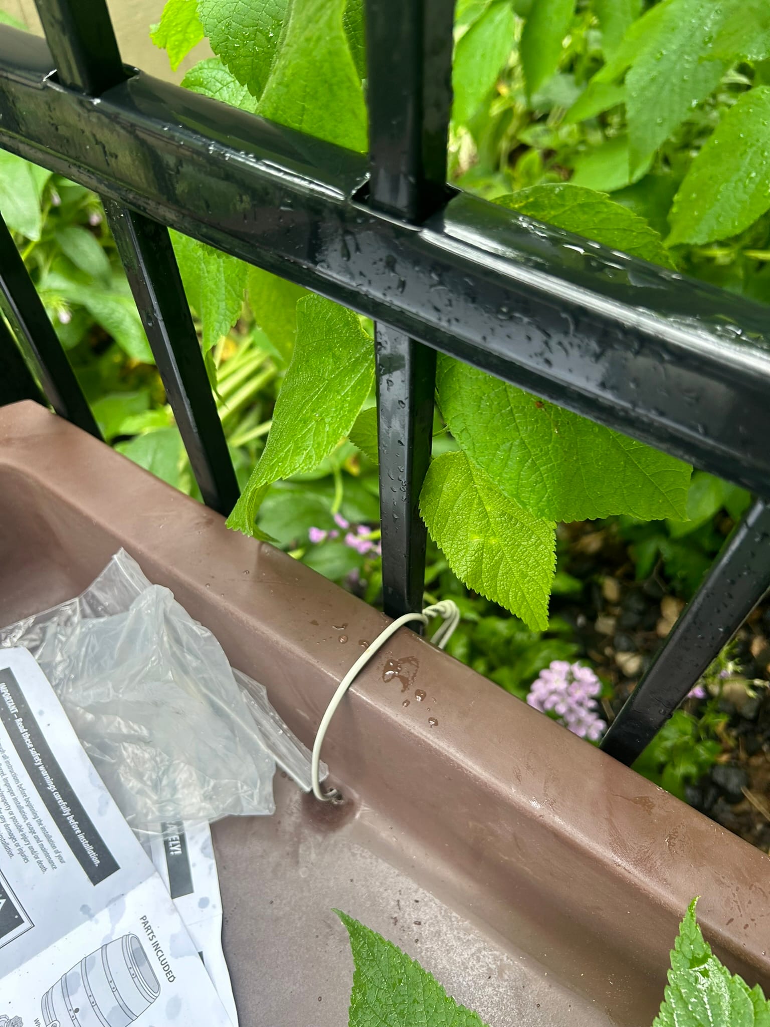 Because I wasn't totally sold on my barrel foundation, I connected the top of the barrel to our fence with some wire.