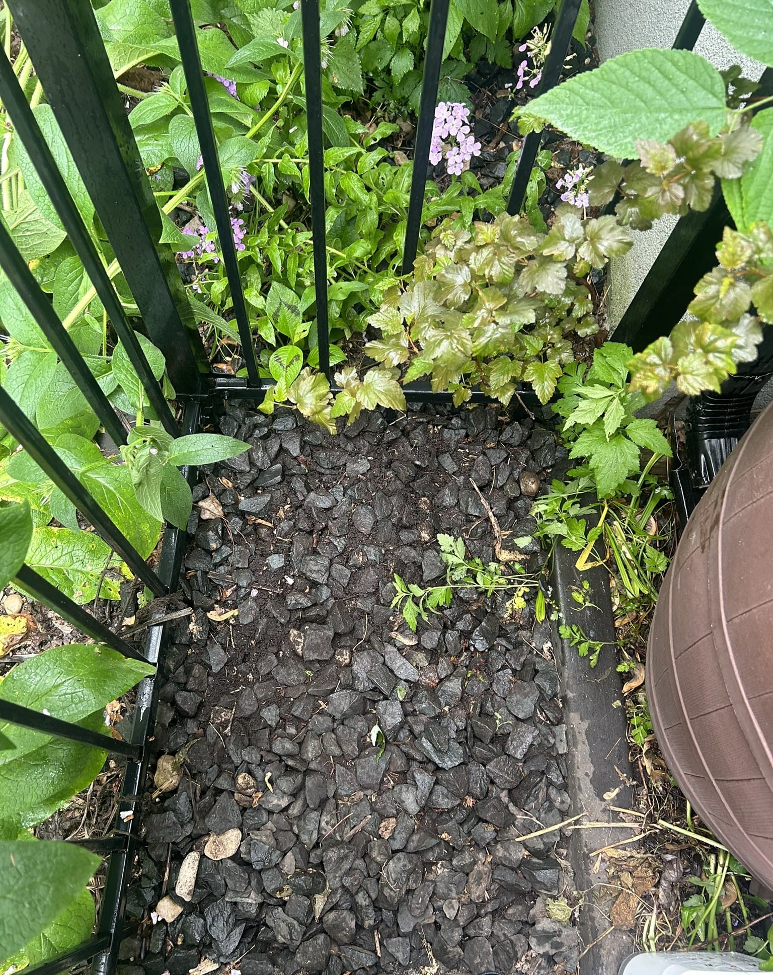 I bought a rain barrel for my wife for her birthday and kept my promise to install it right away. I had a nice spot near an existing paver section I installed to store our snowblower in the summer. I level out the gravel that was behind the paver section.