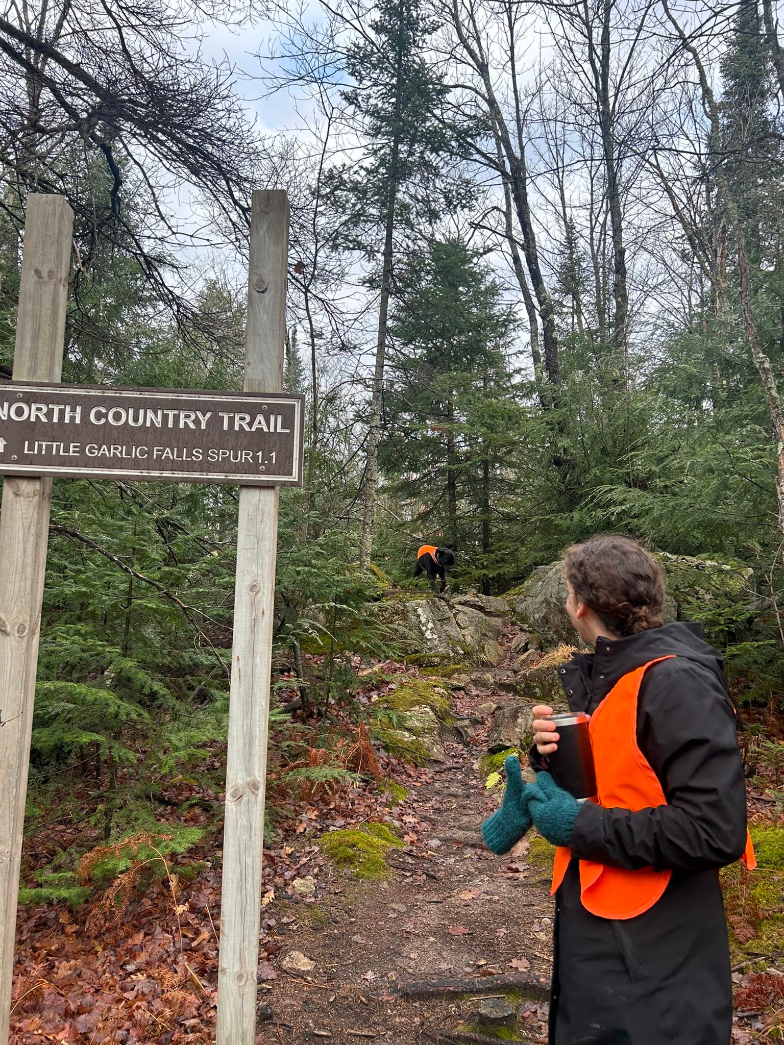 On Friday, we had some fun to locating Little Garlic Falls. We found that hikes like this are poorly signed and are often surrounded with no trespassing signs. The roads are actually public, but you might need a little courage to venture out. This short 2.2 mile out and back is located down a dirt road about 15 minutes north of Marquette on Big Bay Road. We saw a few hunters but no one else was on the trail.