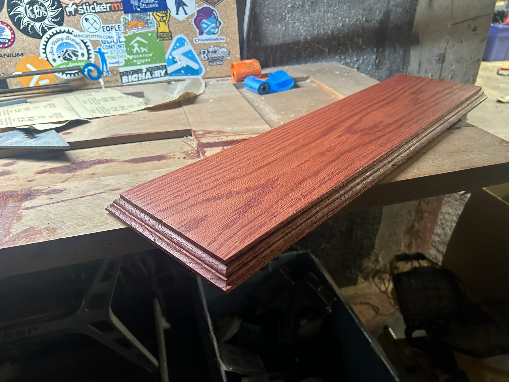 A red oak half wall cap for my sister's basement.