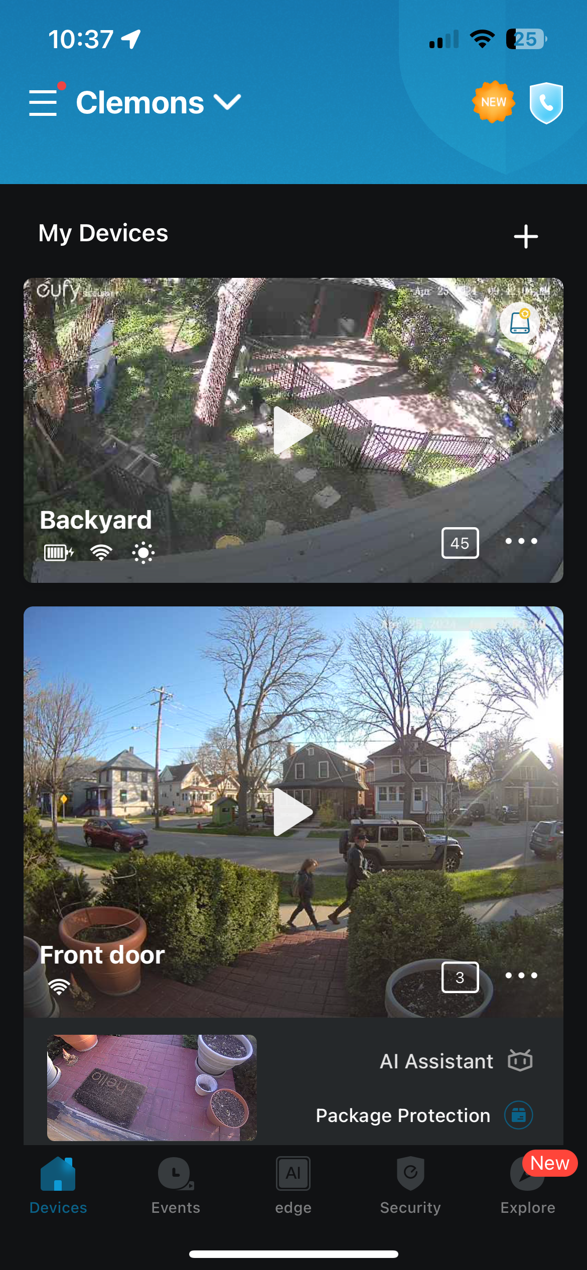 On the eufy side of things, I use the eufy Security iPhone app. It works really well and is one of the reasons I haven't had the desire to try to hook up to Home Assistant. Opening the app gives you a screenshot of the last movement that was detected by the cameras.
