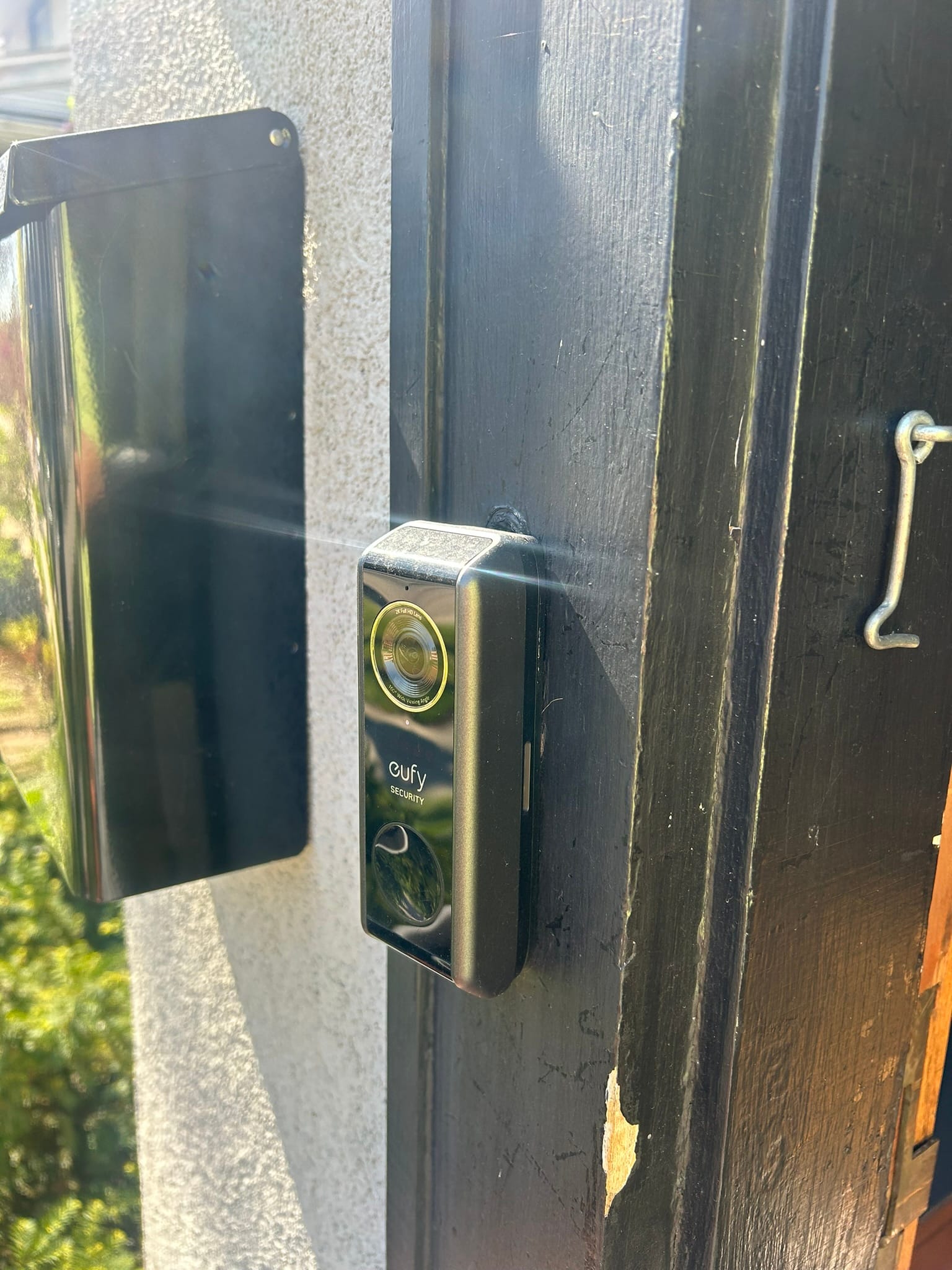 On the front door, I have a eufy doorbell camera. The camera is nice, and it has package detection. I've found that it can be pretty finicky and turned off notifications because the camera's software pretty much sends a notification anytime anyone walks by on either sidewalk. There are settings to adjust this, but I could never get it quite right. It either never notified or did so way too much.
