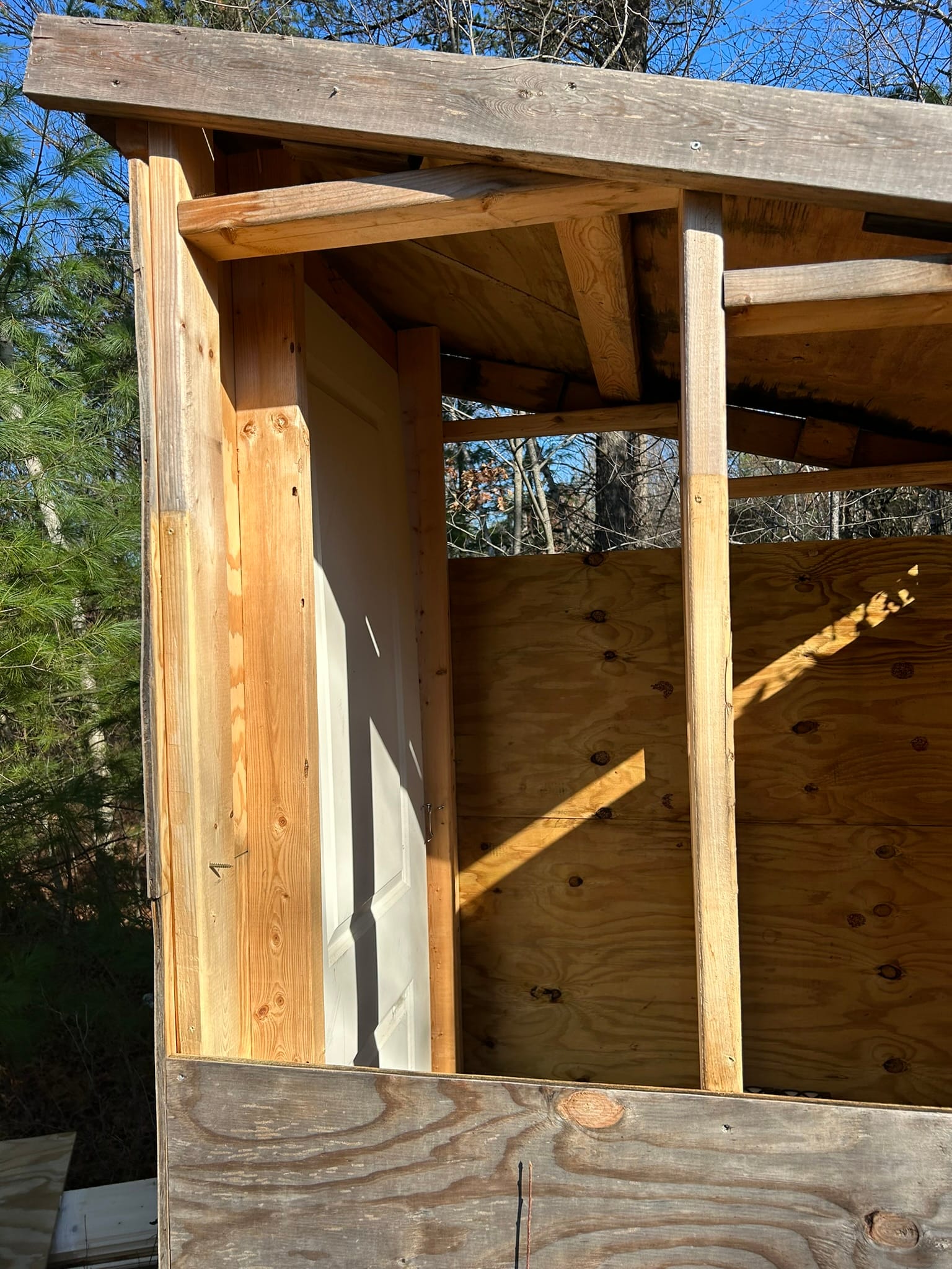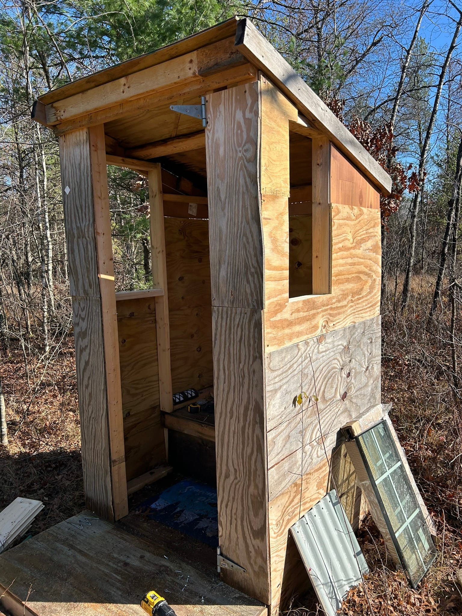 I built an outhouse for the shack last year. I expected it to survive the elements better than it did. It really suffered with all the rain we got this spring and summer. I used mostly scrap wood and little of it was treated. When finishing the inside of the shack, I built a bathroom for a composting toilet so, hopefully, the outhouse won't be a necessity in the near future.