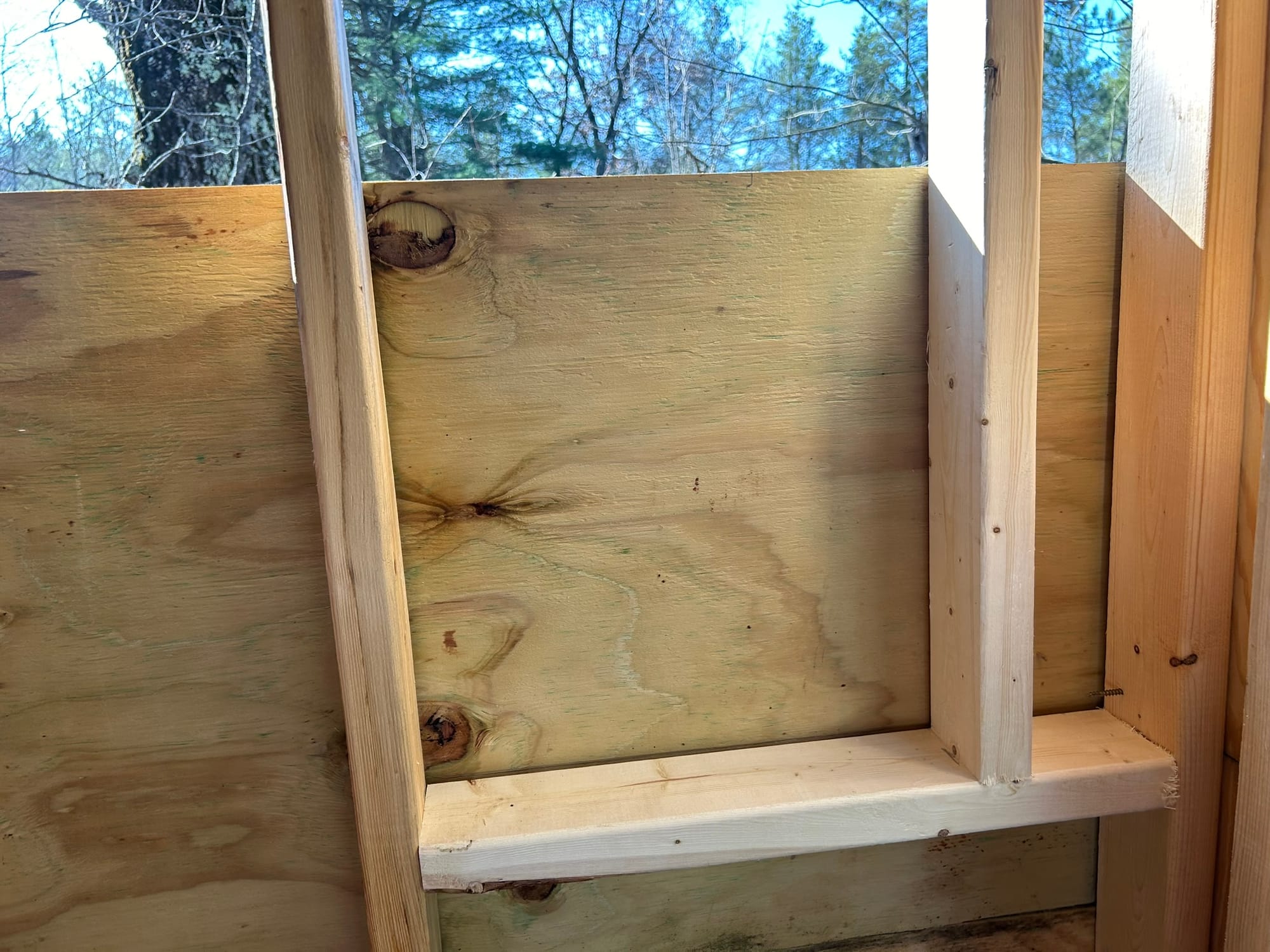 I repeated the process on the other side. I used some scrap plywood to finish up closing in the building. It ended up fine and the windows fit properly.