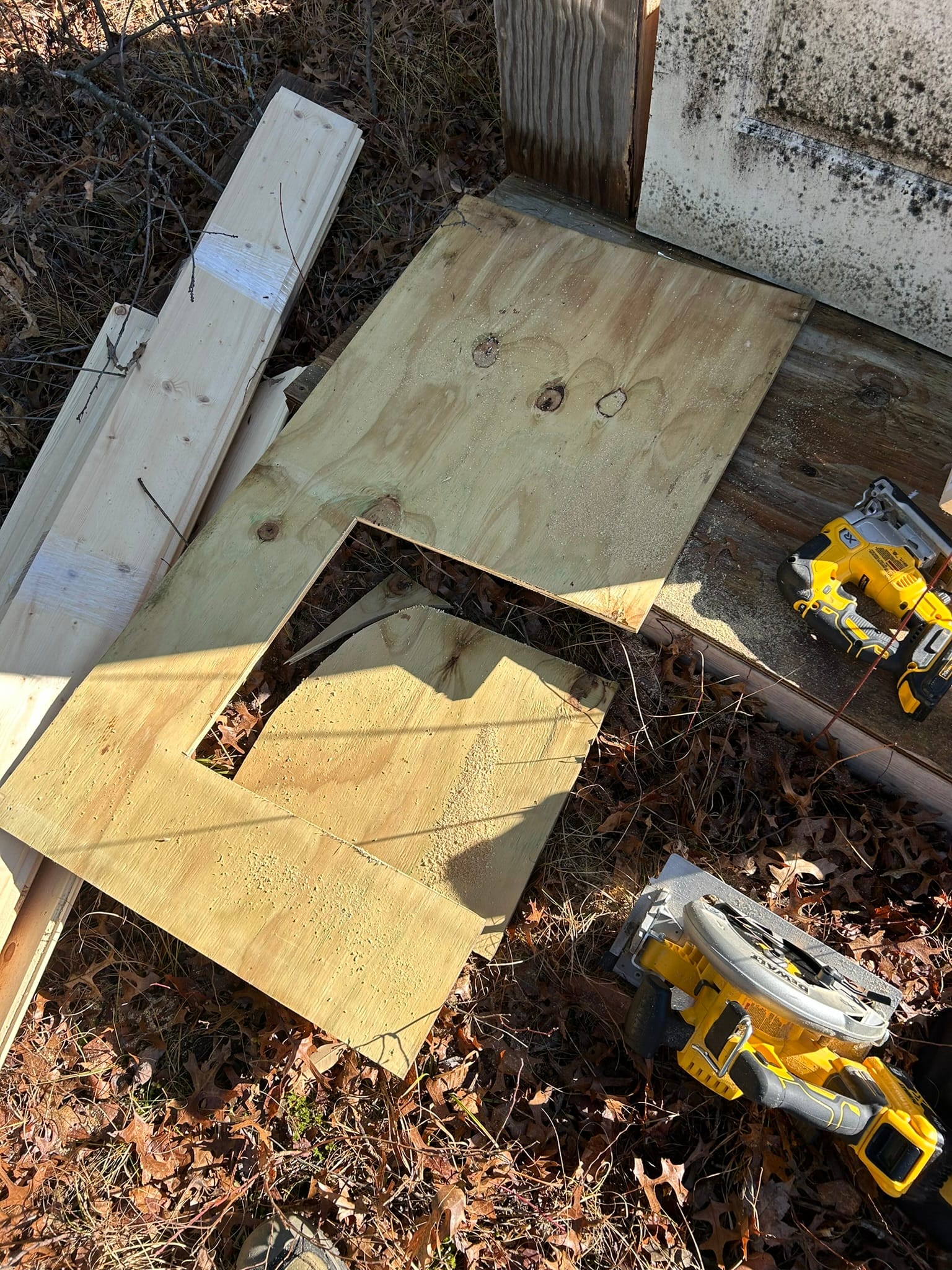 I started by pulling off some of the existing plywood to frame holes for the windows. I had originally screwed everything in place, so it was easy to remove the existing exterior. I framed out the windows and used some construction screws to hold everything together.